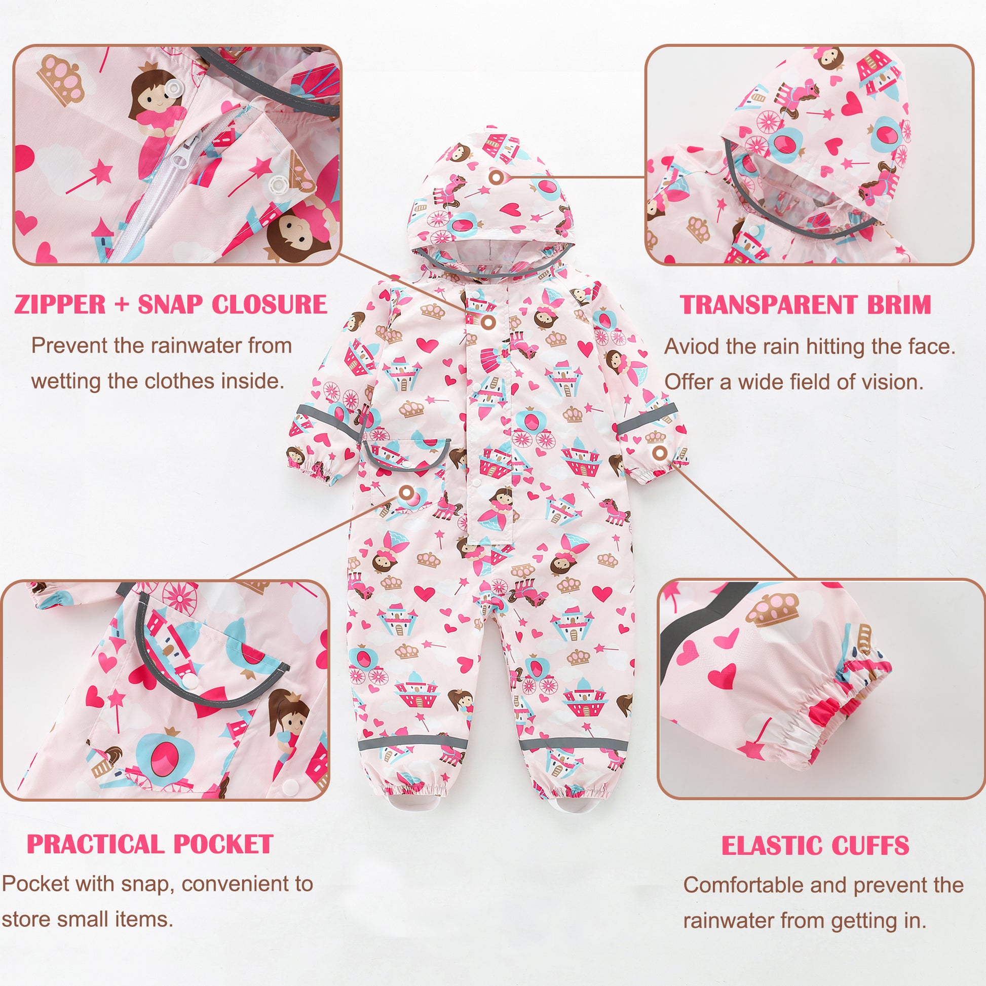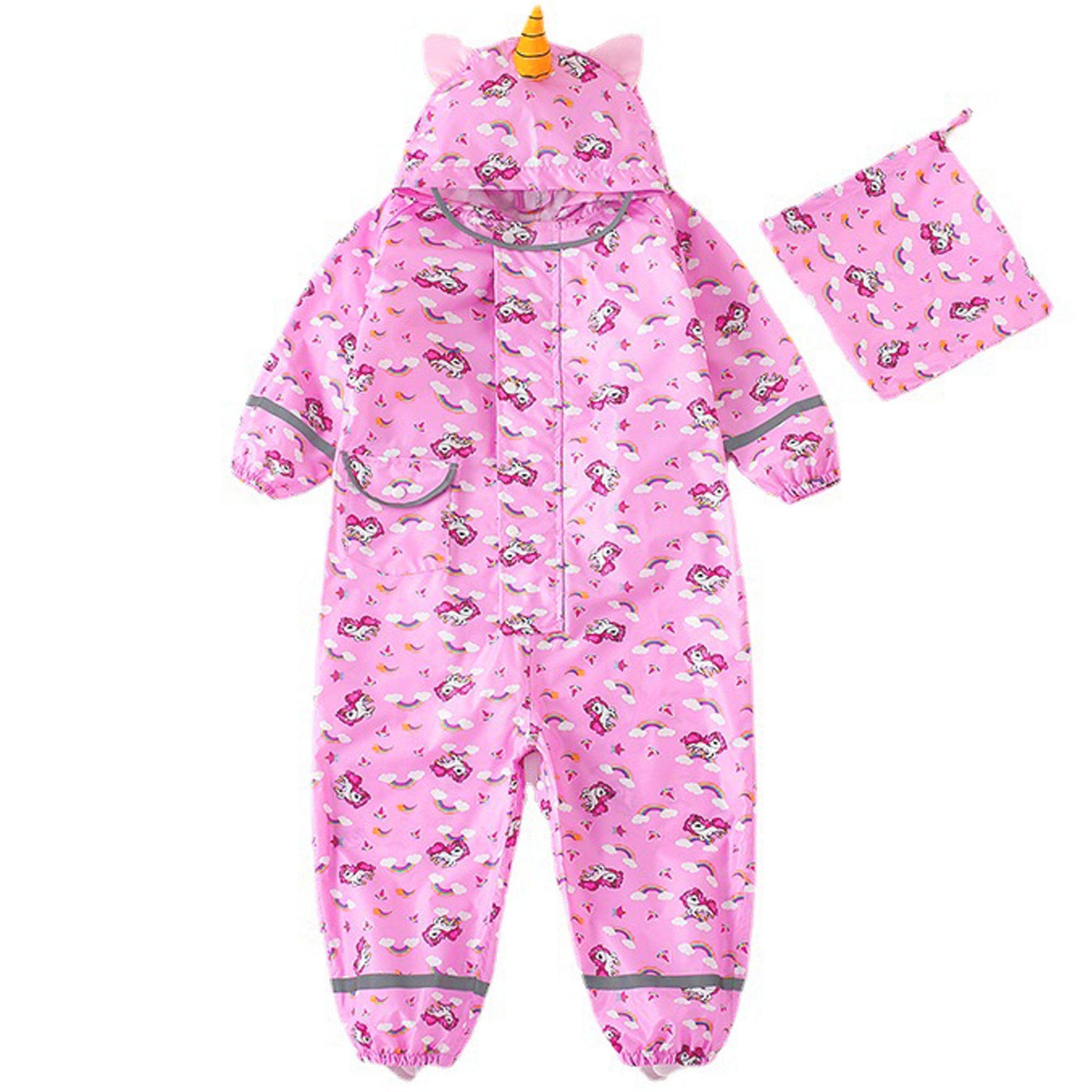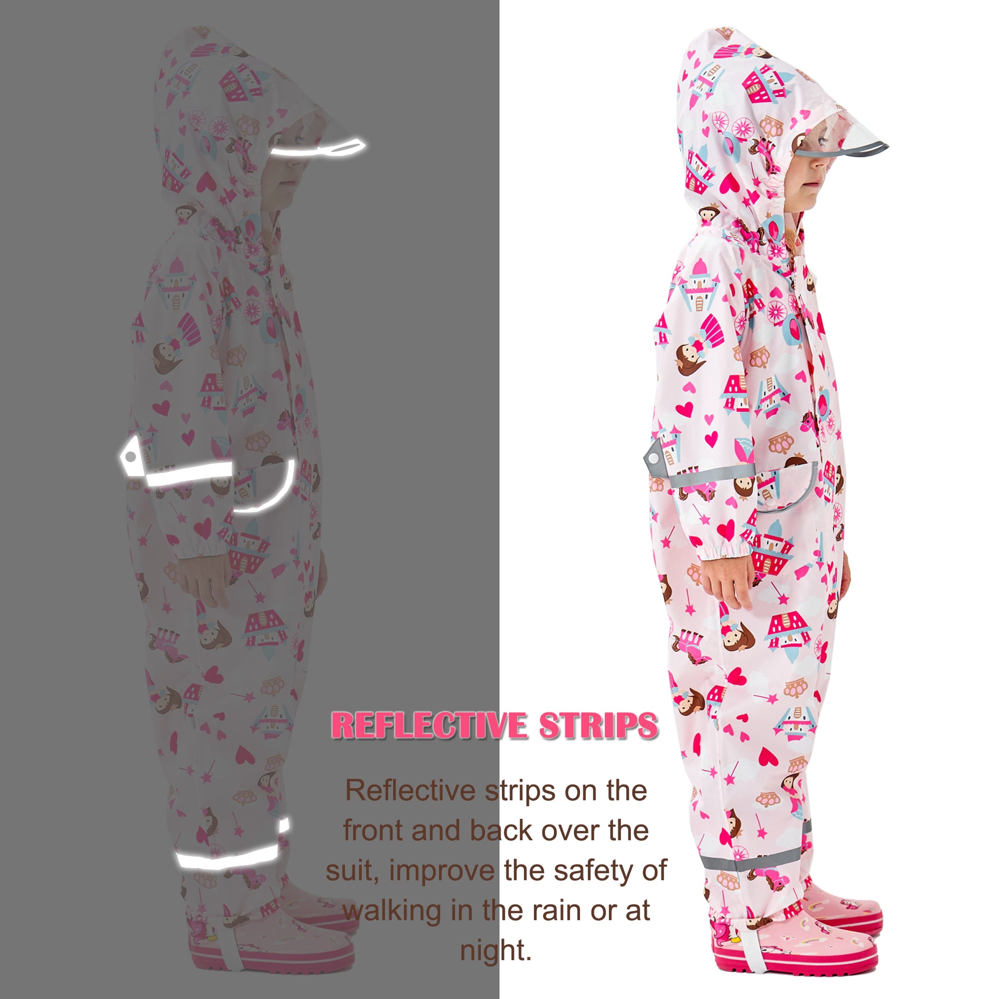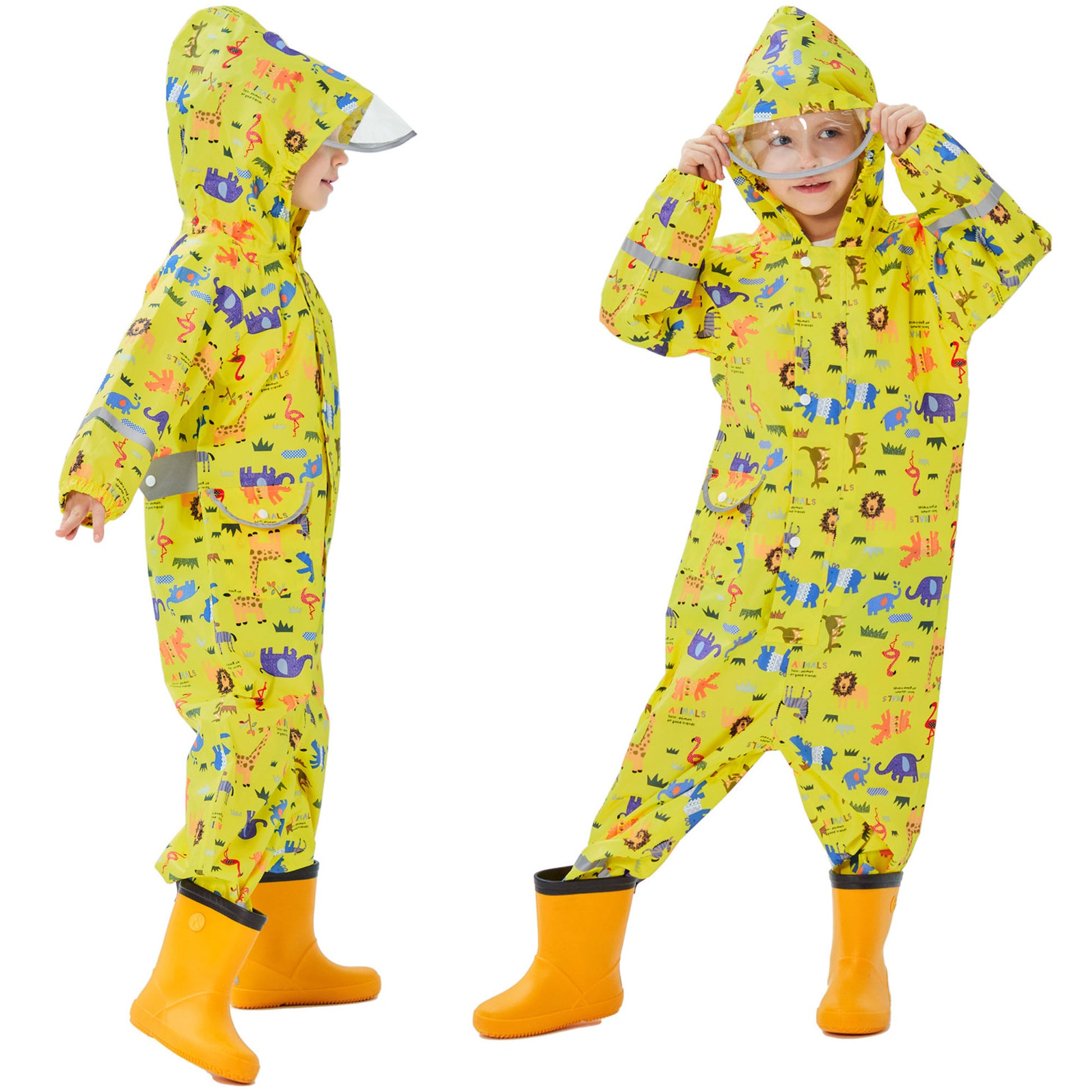 Kids Rain Suit Waterproof Suit Puddle Suit Boys Girls All In One Rain Coat Cartoon Hoodie Zip Rain Jacket