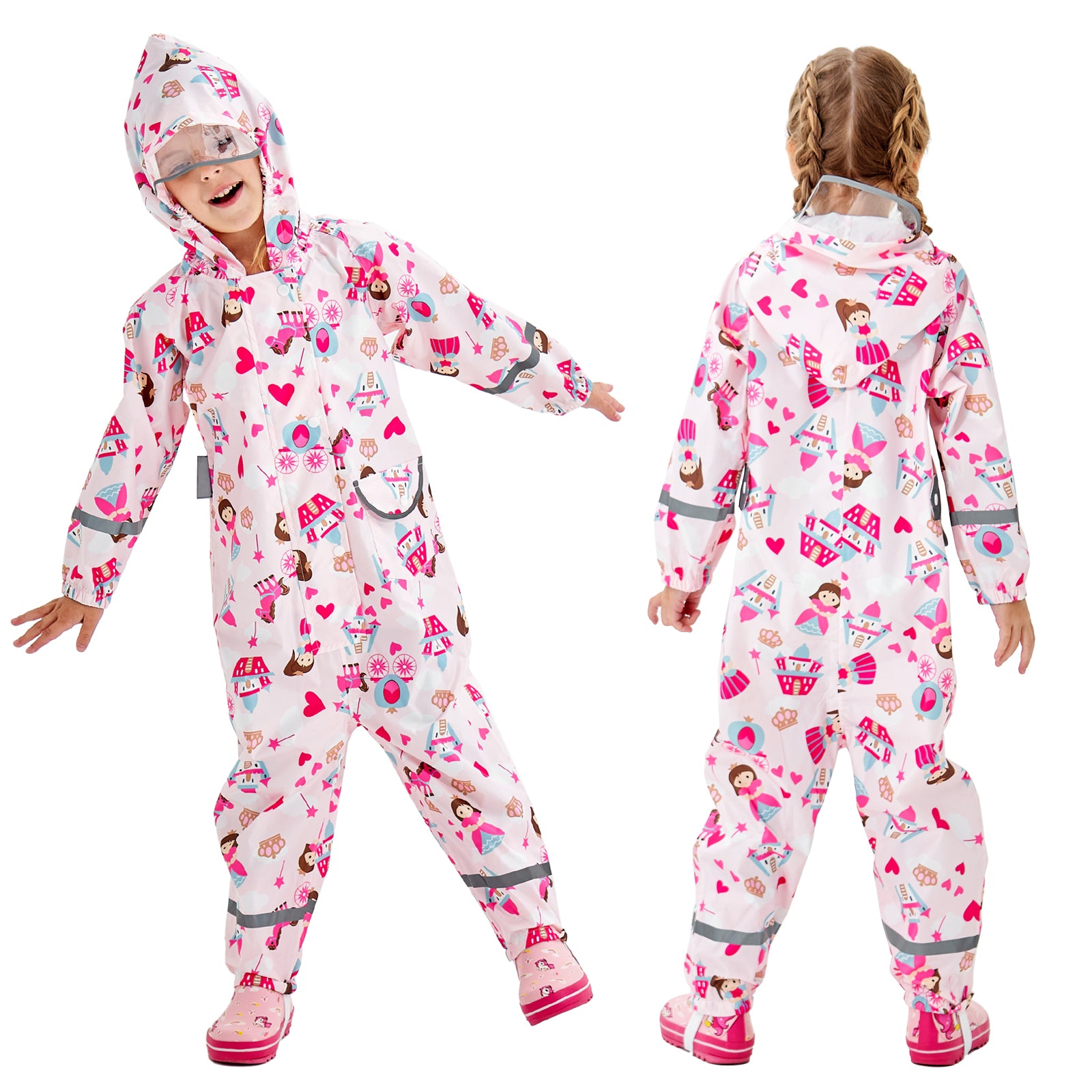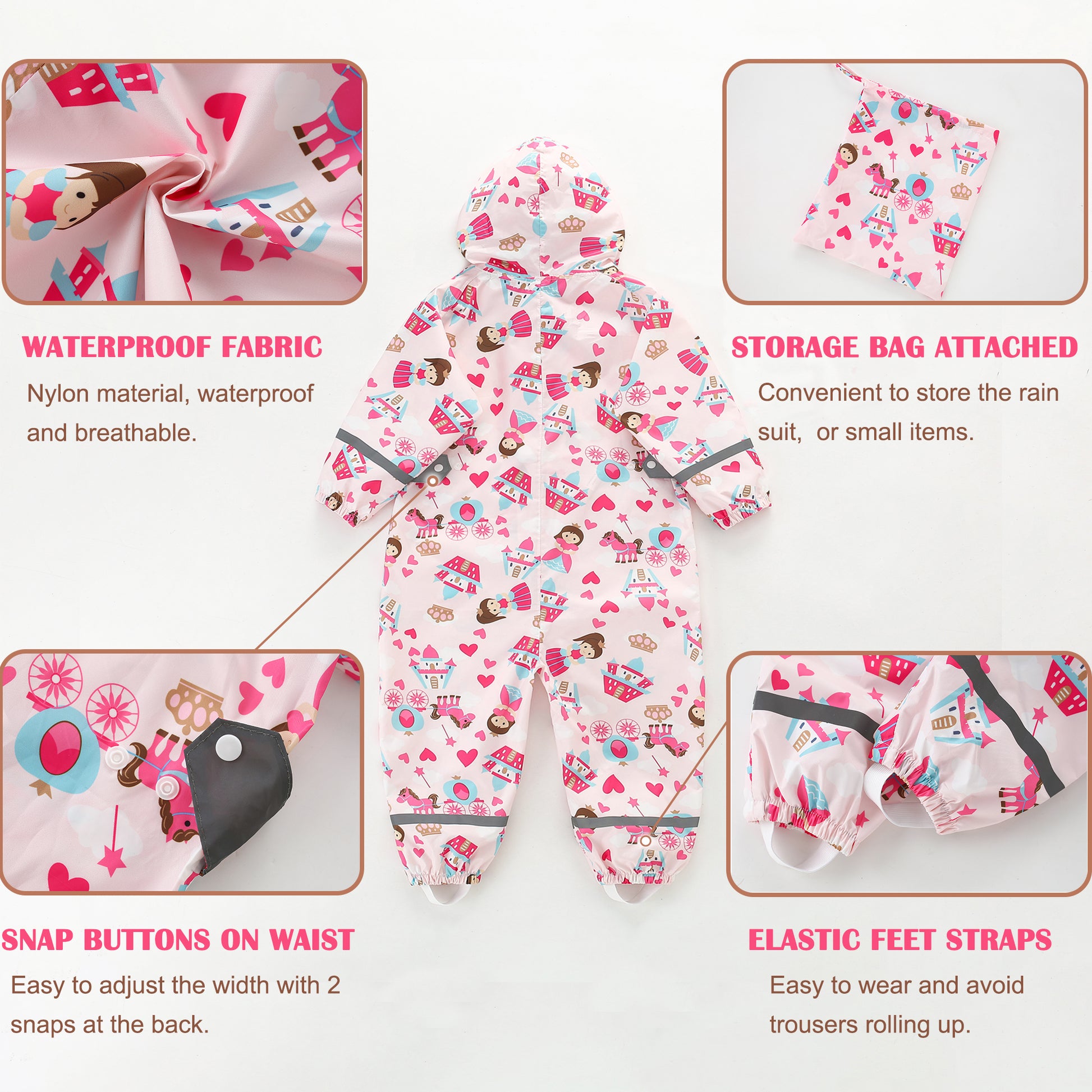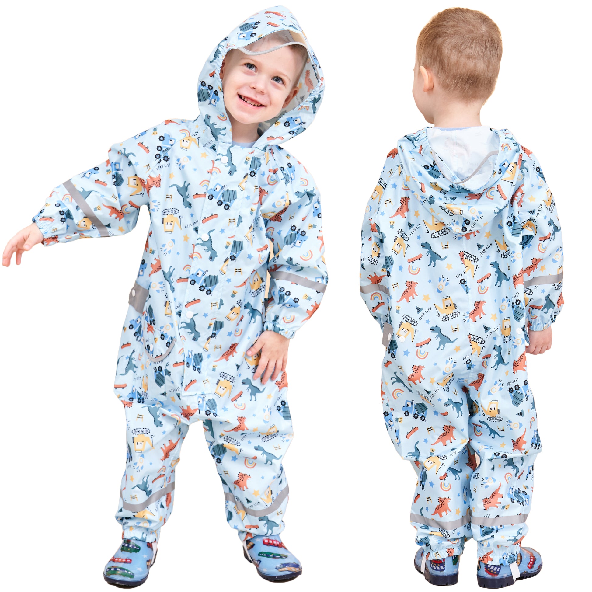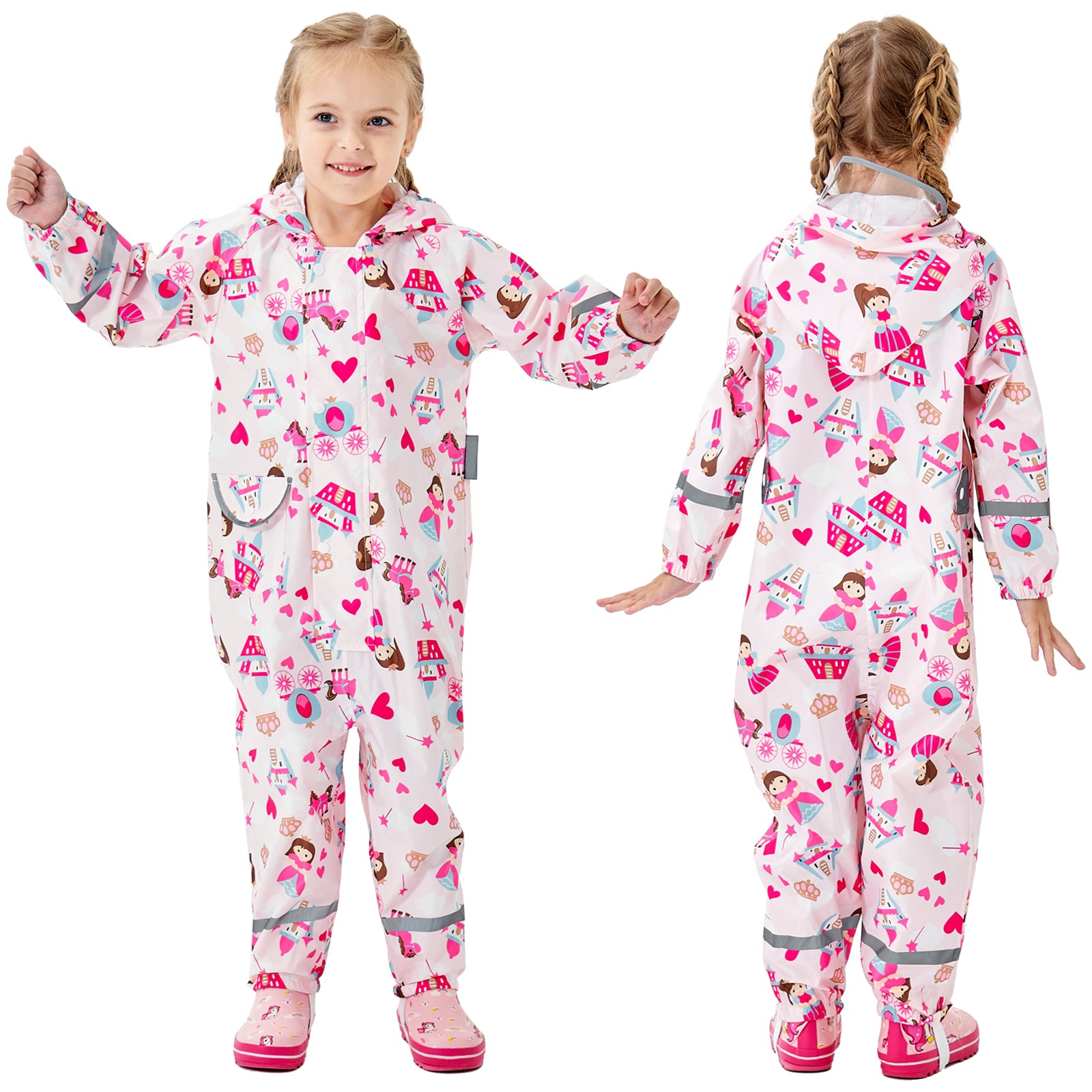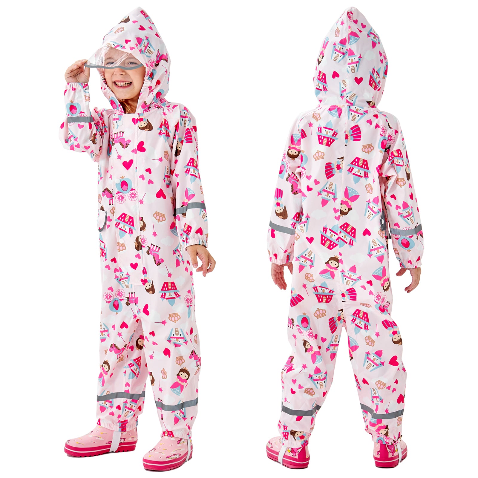 Kids Rain Suit Waterproof Suit Puddle Suit Boys Girls All In One Rain Coat Cartoon Hoodie Zip Rain Jacket